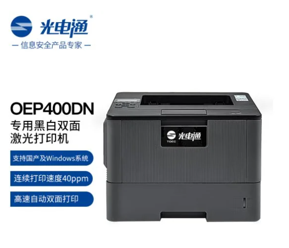 光電通/TOEC OEP400DN A4 黑白打印機 國產龍芯芯片 標準紙盒250頁,可擴展2個250頁或2個520頁附加紙盒,最高可擴展1040頁;